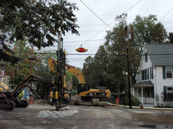 Not to be left out, was the installation of 3800 LF of 12" DI water pipe and 2400 LF of 8" DI water pipe along with almost 4,000 LF of service pipes to the existing homes.This was a particularly challenging job not only because of the tight quarters, but the depth of the pipe (up to 18') and the 12' of ledge that needed to be removed.